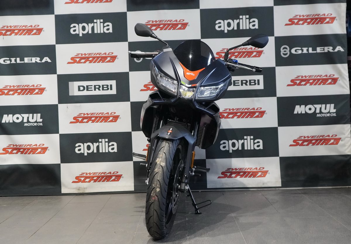Die Aprilia Tuono 125 erhellt die Straße mit einer Full-LED-Lichtanlage, deren vordere Blinker in die Scheinwerfer integriert sind. Das elegant im Cockpit platzierte LCD-Cockpit liefert essenzielle Fahrdaten wie Kraftstoffstand, Momentan- und Durchschnittsverbrauch sowie die verbleibende Reichweite. Mit dem optionalen Aprilia MIA-System kann das Smartphone per Bluetooth verbunden und als Bordcomputer genutzt werden - für Musiksteuerung und Anrufe. So bleibst du immer mit der offiziellen Aprilia-Community verbunden: #bearacer club.