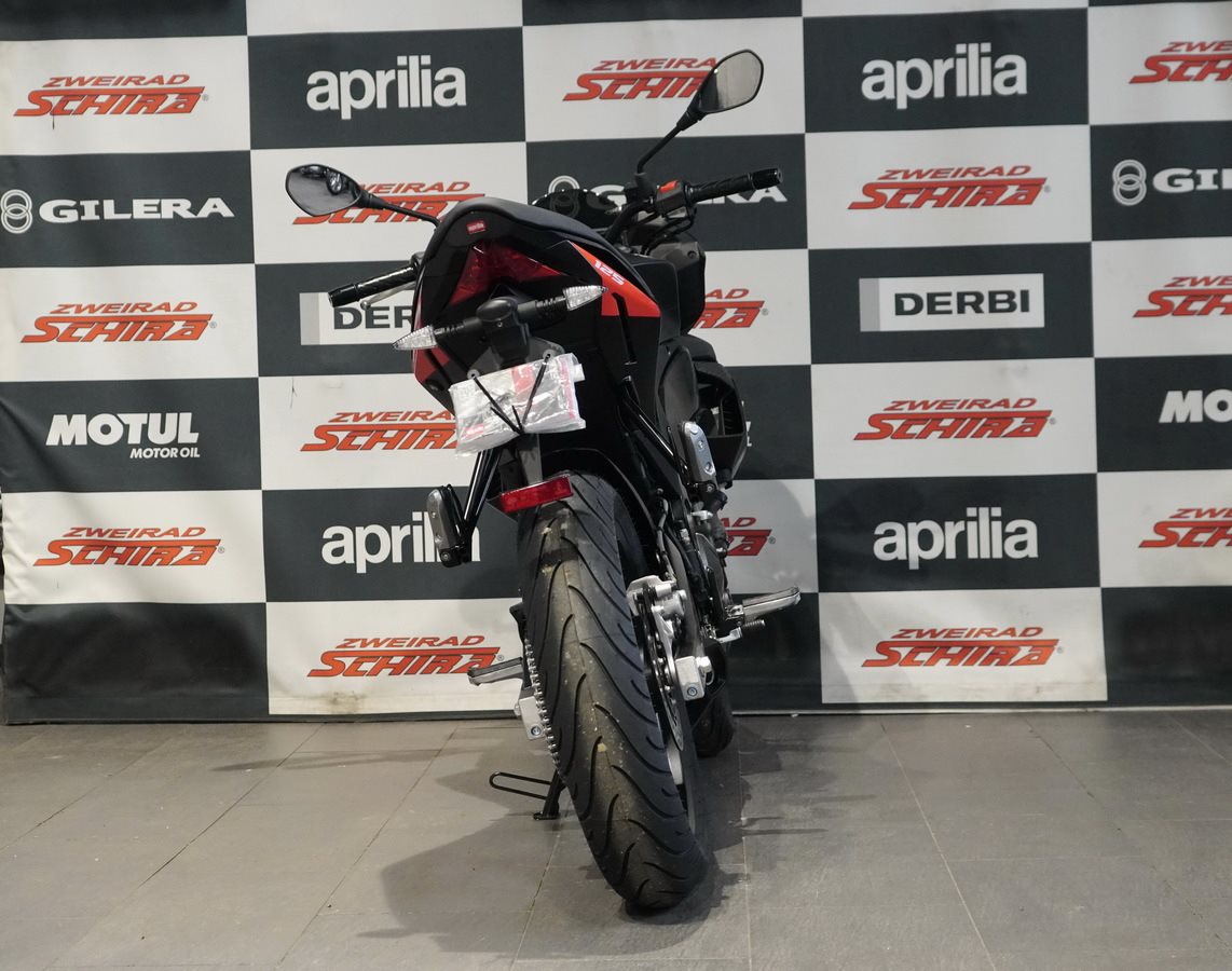 Die Aprilia Tuono 125 sorgt für sofortigen Vortrieb - dank des flüssigkeitsgekühlten Euro-5+-Einzylindermotors mit Vierventiltechnik, der 11 kW bei 10.500 U/min und 11,4 Nm bei 8.500 U/min liefert. Die Motorleistung trifft auf ein präzises Bremssystem mit Zweikanal-ABS - entwickelt in Zusammenarbeit mit Bosch - sowie eine (abschaltbare) Traktionskontrolle, das für maximale Sicherheit und Stabilität sorgt. Für noch schnellere Gangwechsel ist die Tuono 125 bereits für den optionalen elektronischen Quickshifter vorbereitet.