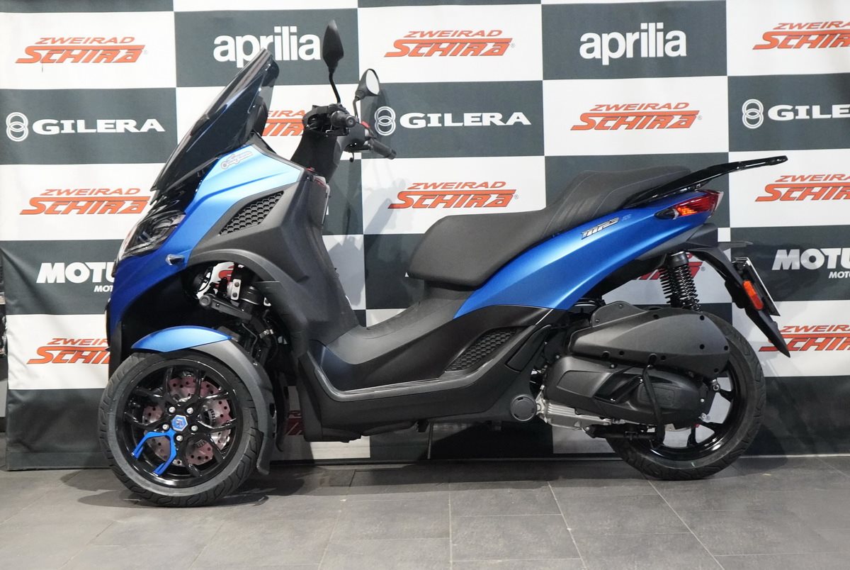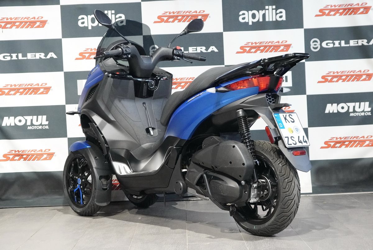 Der Piaggio MP3 310 Sport zieht mit seiner modern geformten Frontpartie und einer Farbgebung, die das stromlinienförmige, vom Automobilbau inspirierte Design unterstreicht, überall die Blicke auf sich. Details wie die blaue Sattelnaht und die Decals auf den schwarzen Vorderradfelgen sorgen ebenfalls für Aufsehen, während ein Mix aus matt- und glänzend-schwarzen Oberflächen und der Fußraum mit seinem Aluminiumeinsatz den sportlichen Look vervollständigen. Diese perfekte Mischung aus Eleganz und Aggressivität, die mit einem B-Führerschein erworben werden kann, ist für Fahrer gedacht, die Stil und Leistung in einem weltweit einzigartigen Fahrzeug suchen.