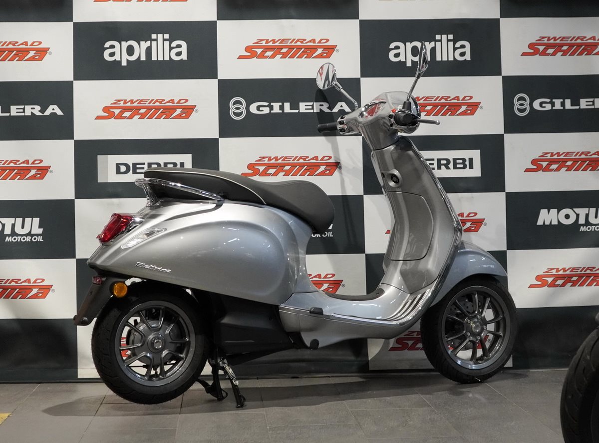 Stilvoll bringt die Vespa Elettrica unser Begehren nach individueller Mobilität mit den aktuellen gesellschaftlichen Themen Umwelt und Technologie harmonisch in Einklang. Leistungsstark und kraftvoll überzeugt der Hightech-Elektromotor in der City. Mit Lithium-Ionen-Batterie und kinetischer Energierückgewinnung ist Autonomie bis zu 100 Kilometern Reichweite angesagt.