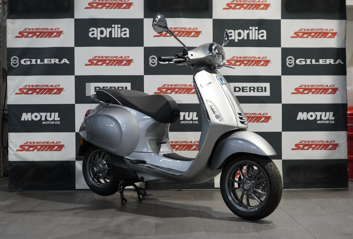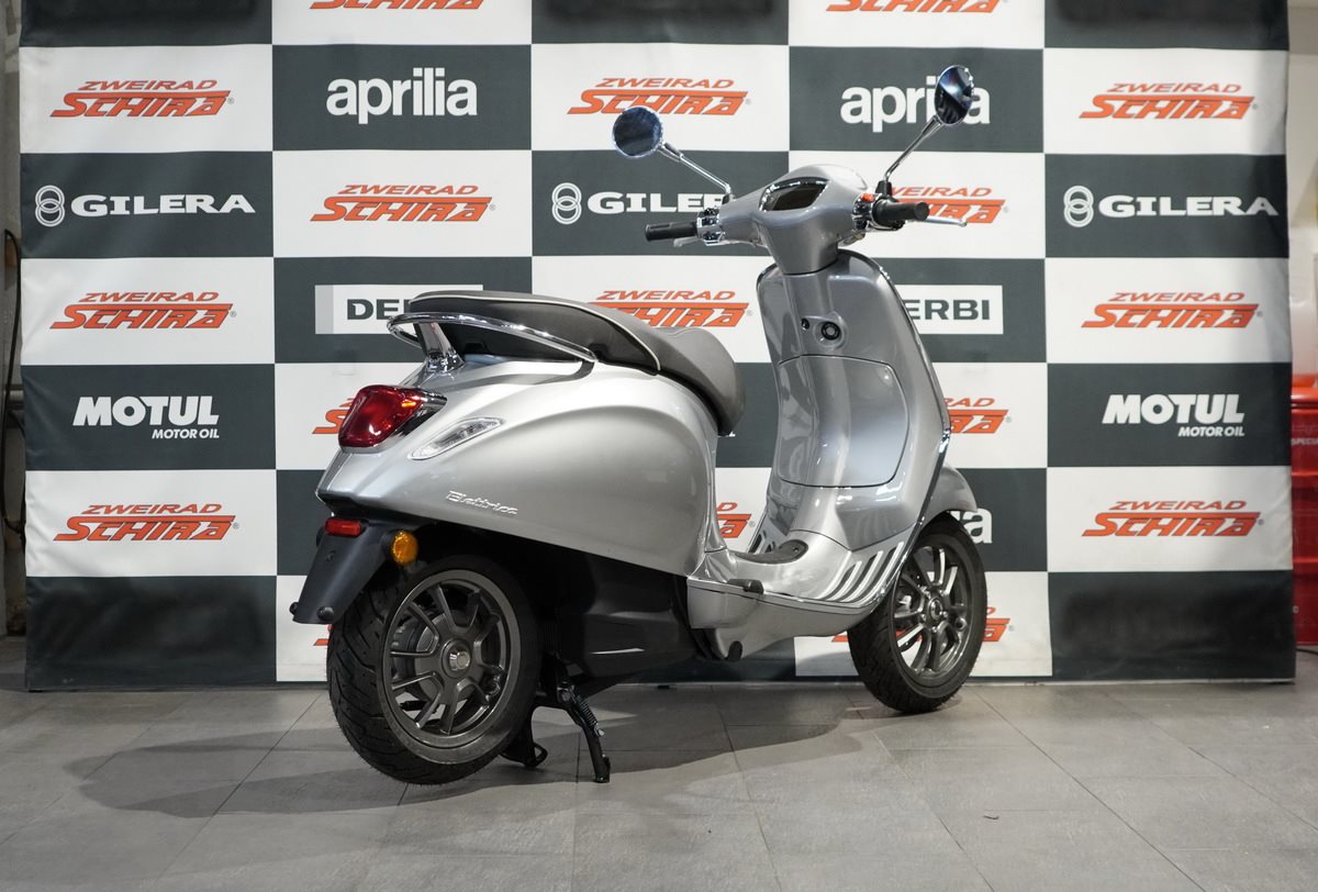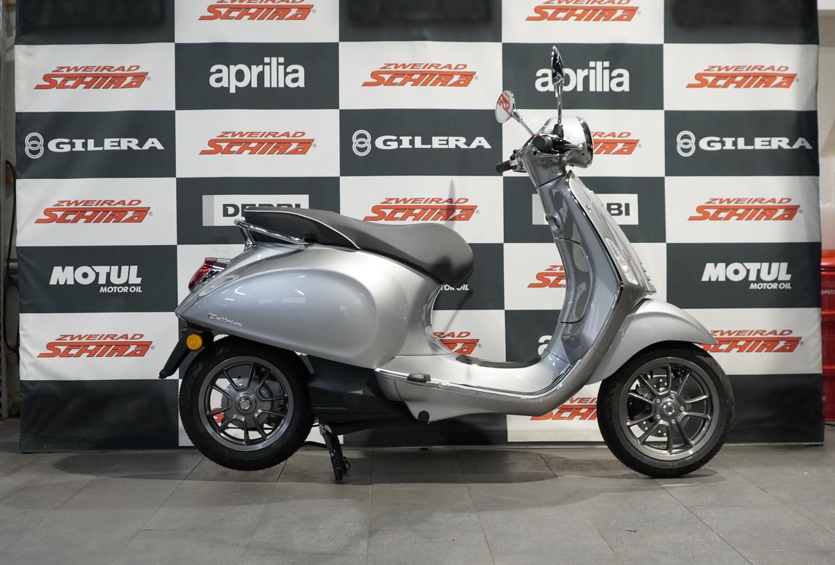 Stilvoll bringt die Vespa Elettrica unser Begehren nach individueller Mobilität mit den aktuellen gesellschaftlichen Themen Umwelt und Technologie harmonisch in Einklang. Leistungsstark und kraftvoll überzeugt der Hightech-Elektromotor in der City. Mit Lithium-Ionen-Batterie und kinetischer Energierückgewinnung ist Autonomie bis zu 100 Kilometern Reichweite angesagt. Leichtes Handling und natürlich ihre einzigartige Anmutung garantieren Fahrspaß pur brandneue Vespa Elettrica
