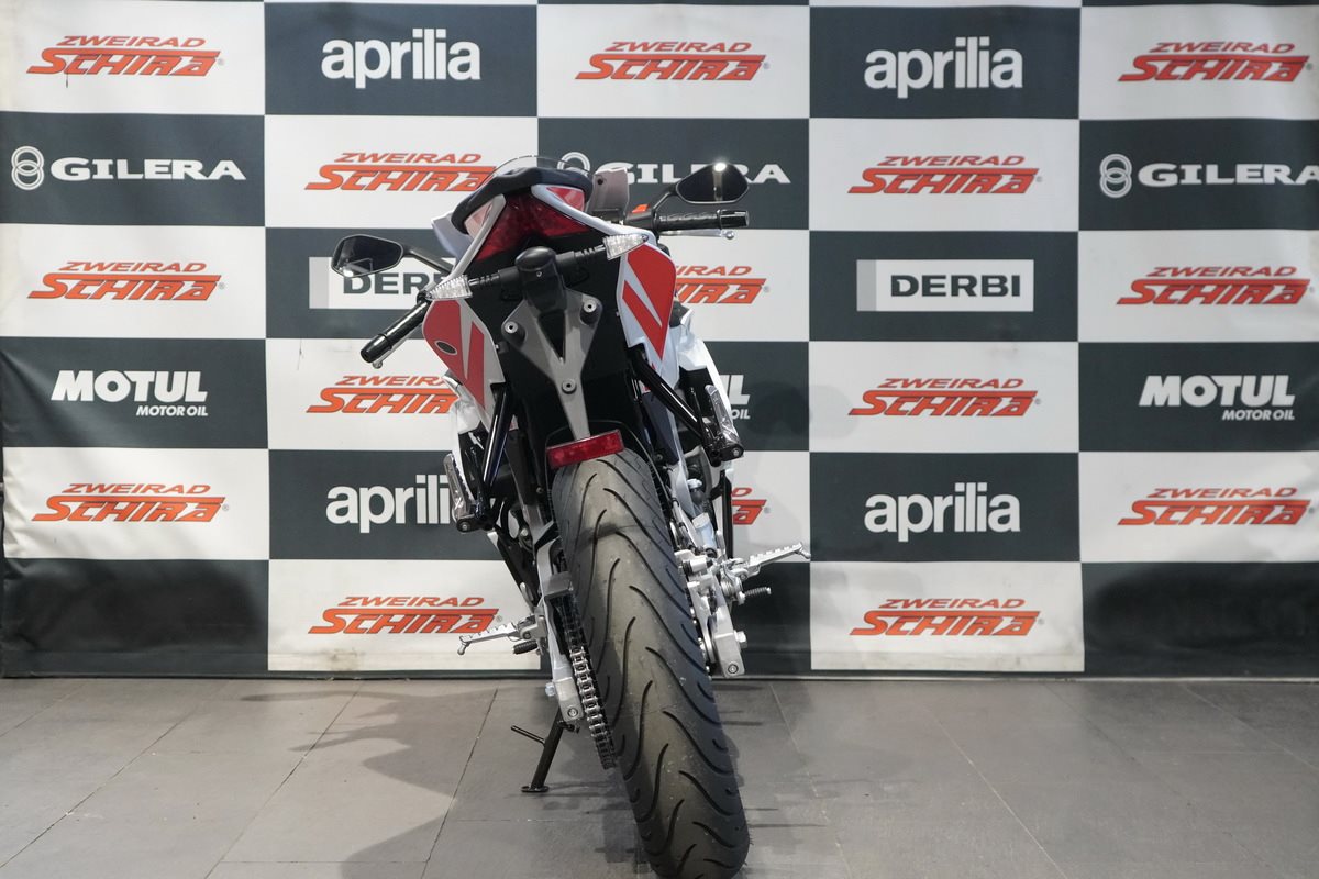 Die Aprilia RS 125 ist mit einem erstklassigen Motor ausgestattet: einen Einzylinder mit Euro 5+ Zulassung, Vierventil-Technik und Flüssigkeitskühlung - umweltfreundlich, ohne auf Spitzenleistung zu verzichten. Für ein sicheres und präzises Fahrgefühl arbeitet das Bremssystem perfekt mit dem Zweikanal-ABS zusammen, das mit einer Stoppie Control ausgestattet ist. Zudem ist die RS 125 serienmäßig mit einer deaktivierbaren Traktionskontrolle ausgestattet und für die Installation des elektronischen Quickshifters (optional erhältlich) vorbereitet, der blitzschnelle Gangwechsel ermöglicht.