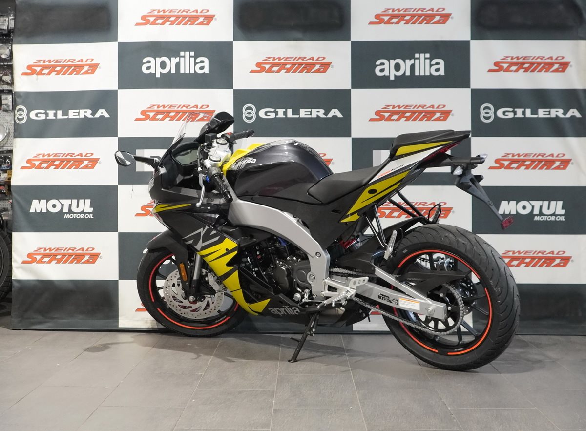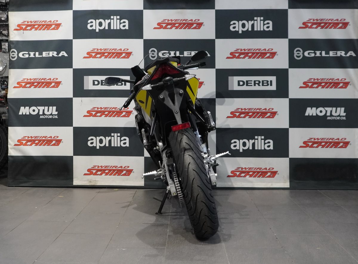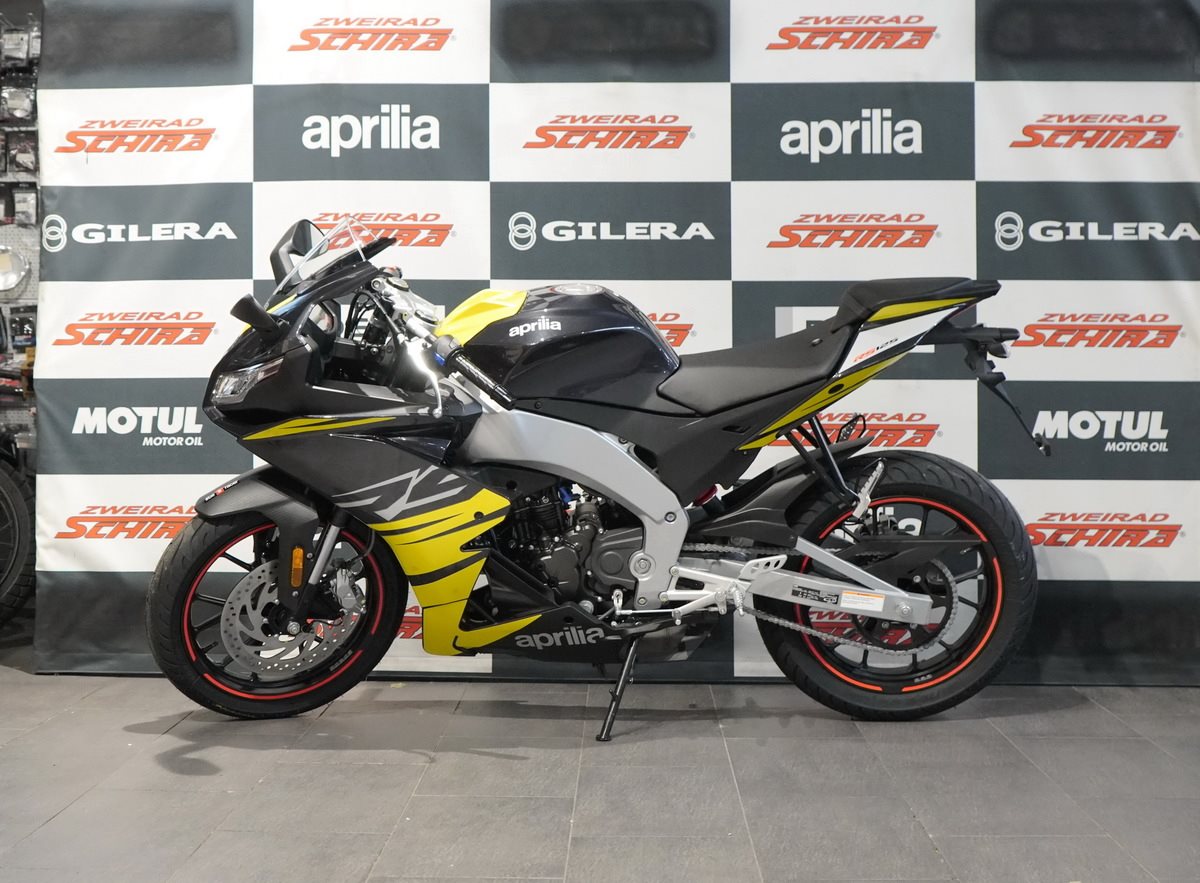 Die Aprilia RS 125 ist mit einem erstklassigen Motor ausgestattet: einen Einzylinder mit Euro 5+ Zulassung, Vierventil-Technik und Flüssigkeitskühlung - umweltfreundlich, ohne auf Spitzenleistung zu verzichten. Für ein sicheres und präzises Fahrgefühl arbeitet das Bremssystem perfekt mit dem Zweikanal-ABS zusammen, das mit einer Stoppie Control ausgestattet ist. Zudem ist die RS 125 serienmäßig mit einer deaktivierbaren Traktionskontrolle ausgestattet und für die Installation des elektronischen Quickshifters (optional erhältlich) vorbereitet, der blitzschnelle Gangwechsel ermöglicht.