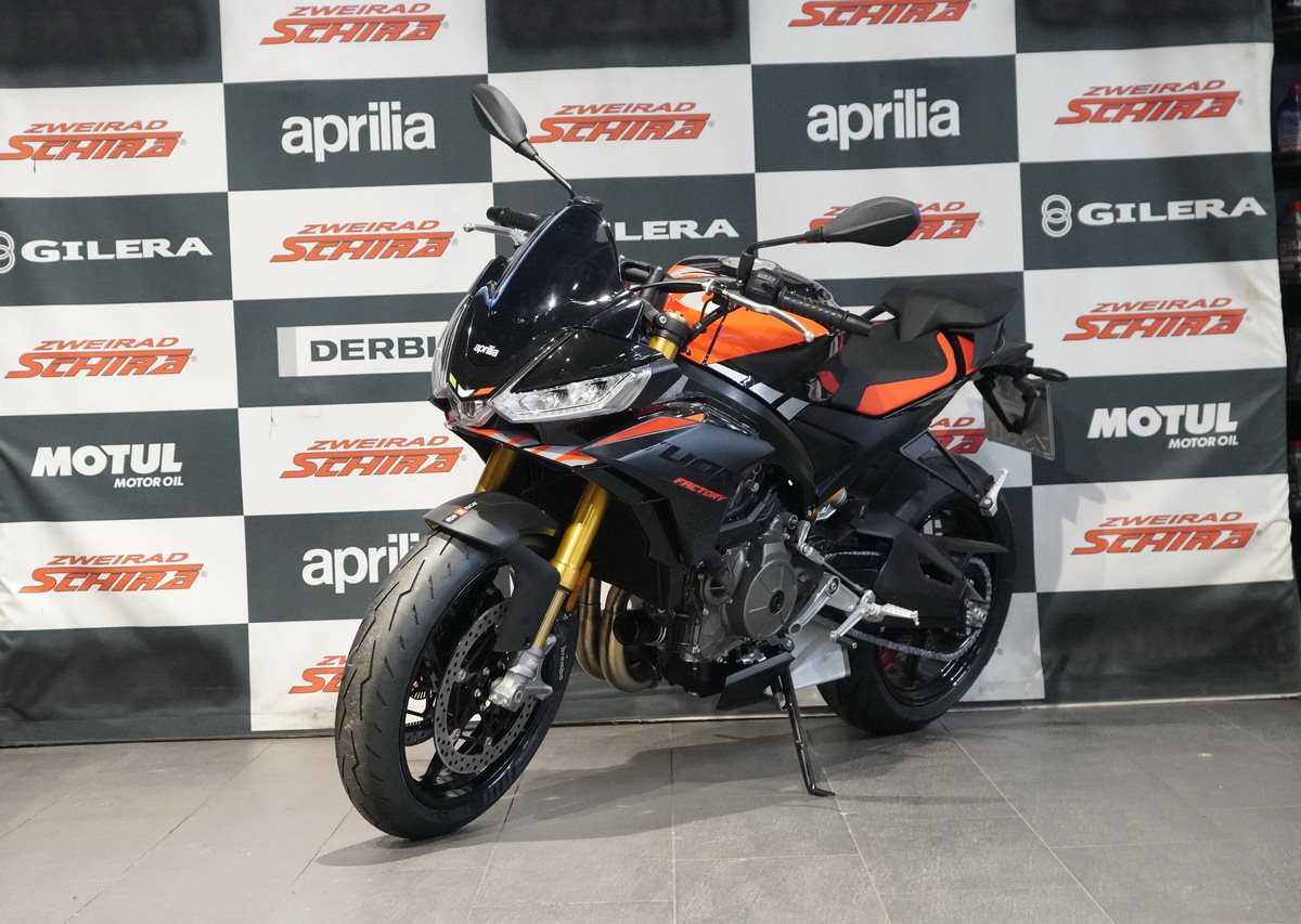 Mit einem Gewicht von nur 181 kg und einem Zweizylindermotor mit 105 PS bietet die Aprilia Tuono 660 Factory ein in ihrer Kategorie absolut vorbildliches Leistungsgewicht. Die Verbrennungen sind asymmetrisch und um 270° versetzt, um unregelmäßige Explosionen und damit einen Sound zu erzeugen, der einem V-Twin ähnelt. Der Rahmen und die Schwinge aus Aluminium mit exquisiter Racing-Abstammung arbeiten perfekt mit den einstellbaren Öhlins Federelementen zusammen und bieten zusätzliche Stabilität, Kontrolle und Handhabung. Das Endergebnis ist ein Motorrad, das immer spritzig ist und Emotionen weckt und mit dem du dich bei jeder Fahrt wie ein echter Racer fühlst.