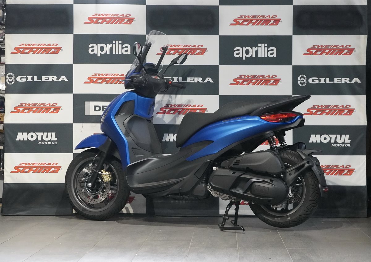 Angetrieben von einem modernen Euro 5+ Einzylinder-Motor mit elektronischer Einspritzung und Flüssigkeitskühlung ist der Piaggio Beverly S 400 der ideale Roller für den Stadtverkehr sowie für mittlere und lange Überlandfahrten - auch mit Beifahrer. Der Motor liefert über 35 PS und ein hohes Drehmoment, das Kraft und sanfte Leistungsabgabe kombiniert, um eine dynamische und dennoch mühelose Fahrt zu ermöglichen. Die reduzierte mechanische Geräuschentwicklung und die optimierte Kraftübertragung per Riemen steigern zusätzlich die Effizienz und machen den Piaggio Beverly S zu einer perfekten Kombination aus Kontrolle und Fahrspaß.