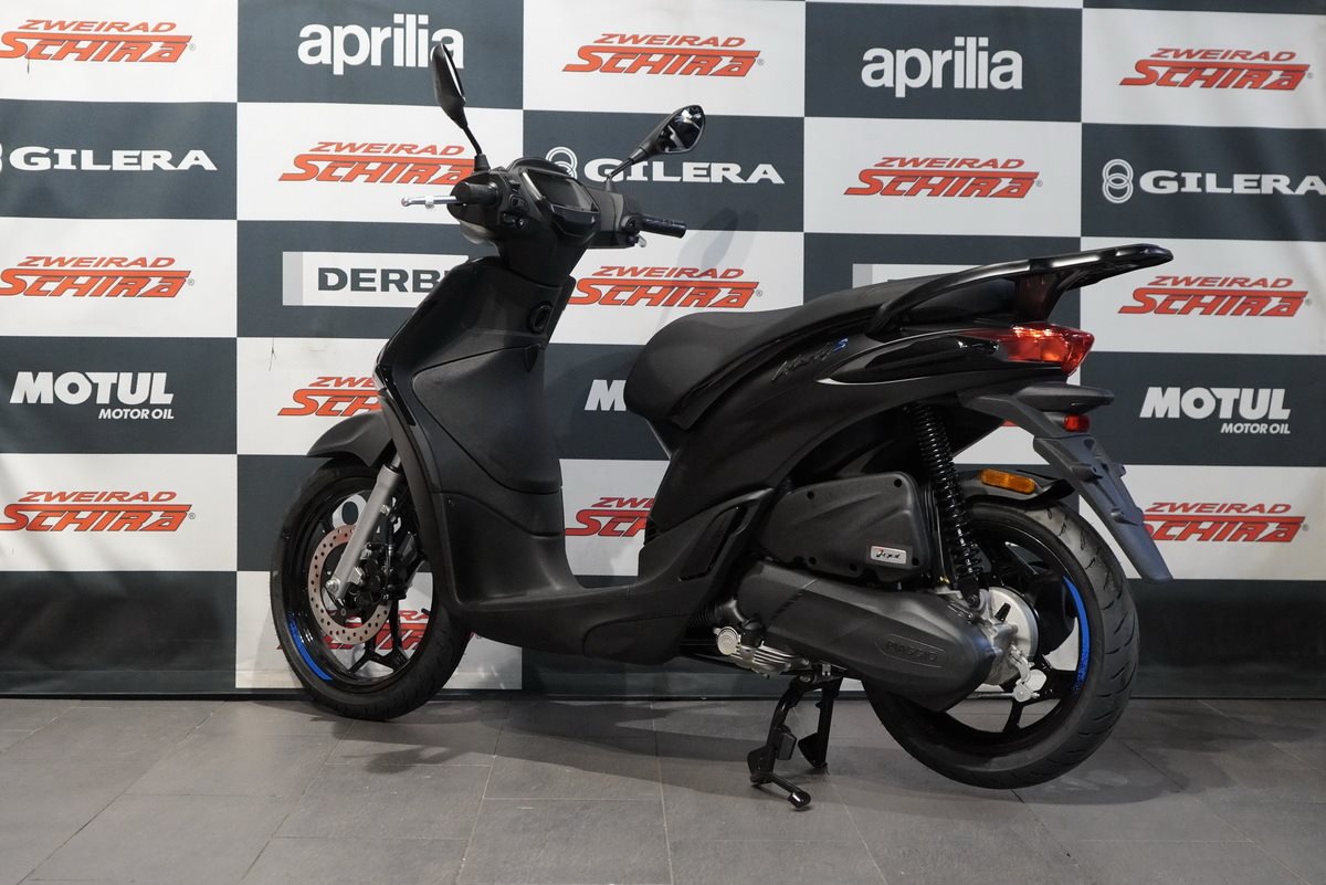 Der Piaggio Liberty S erfüllt alle Anforderungen an die urbane Mobilität dank seines Einzylinder-Viertaktmotors mit i-get-Technologie (Euro 5+), Luftkühlung und elektronischer Einspritzung. Das optimierte Auspuffsystem und der überarbeitete Luftfilter sorgen für eine kraftvolle Performance, einen niedrigen Verbrauch und eine leise Fahrt. Zudem verbessern technische Lösungen die Agilität und den Komfort: Das 16-Zoll-Vorderrad mit Reifen mit hohem Querschnitt absorbiert Straßenunebenheiten optimal, während der erhöhte Lenker eine bequeme und natürliche Sitzposition ermöglicht.
