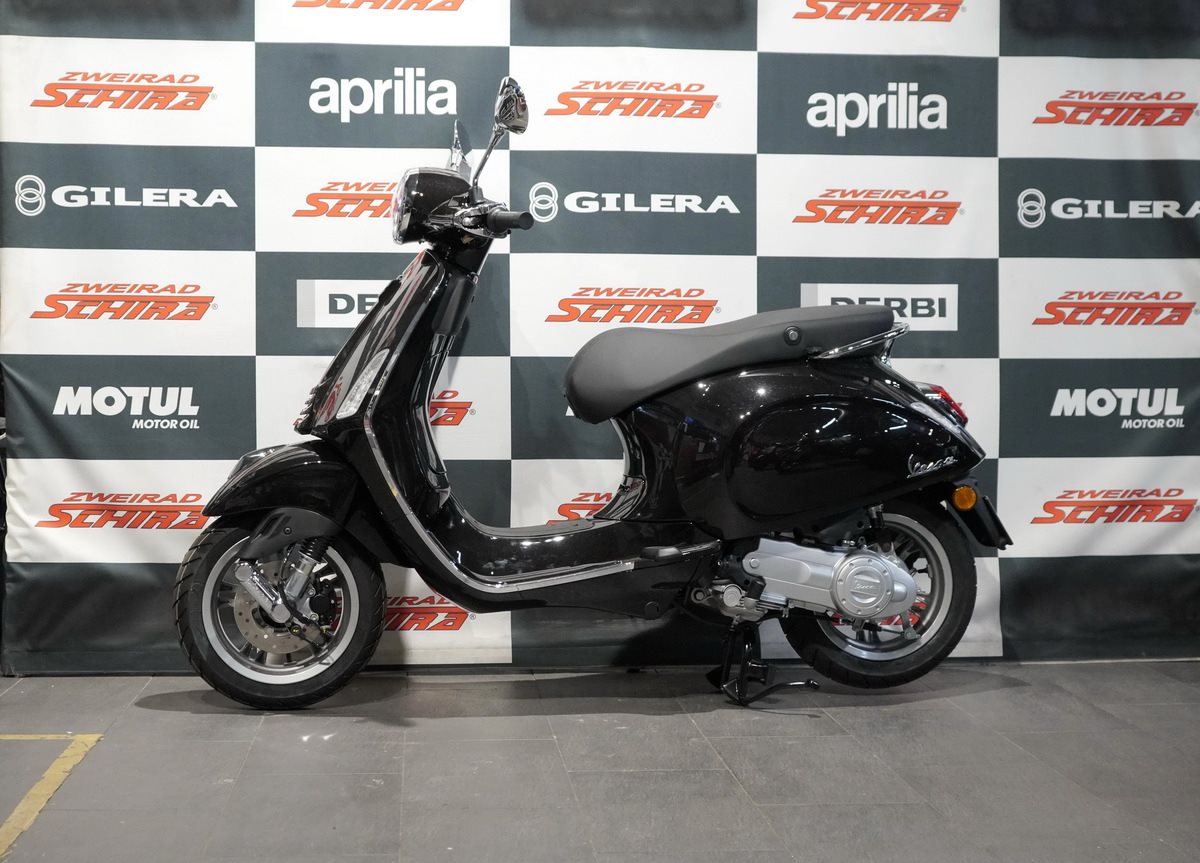 Moderne Details und zeitloser Stil verbinden sich. Mit ihrem schnittigen Design und den Chromakzenten bringt die Vespa Primavera eine zeitgenössische Ausstrahlung und eine lebendige Farbpalette in das reiche Erbe der Vespa.