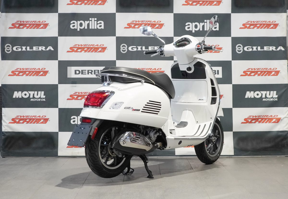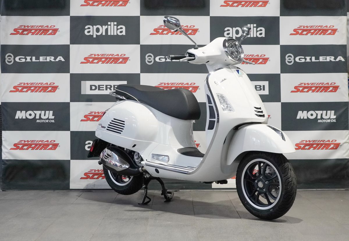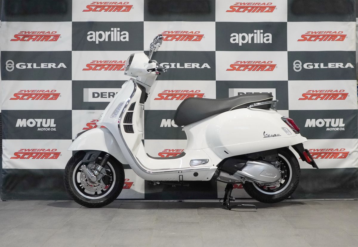 Komfortabel und stabil, aber dennoch wendig und prägnant - das sind die Schlüsseleigenschaften eines echten Gran Turismo. Der 125 cm3 Euro 5+ i-get Motor ist ein Meisterwerk der Effizienz. Die legendäre Stahlkarosserie, das komfortable Fahrwerk, die 12 -Felgen und die Scheibenbremsen an beiden Rädern mit ABS zusammen mit ASR machen die Vespa Gts Super zur idealen Wahl für jeden Ausflug.