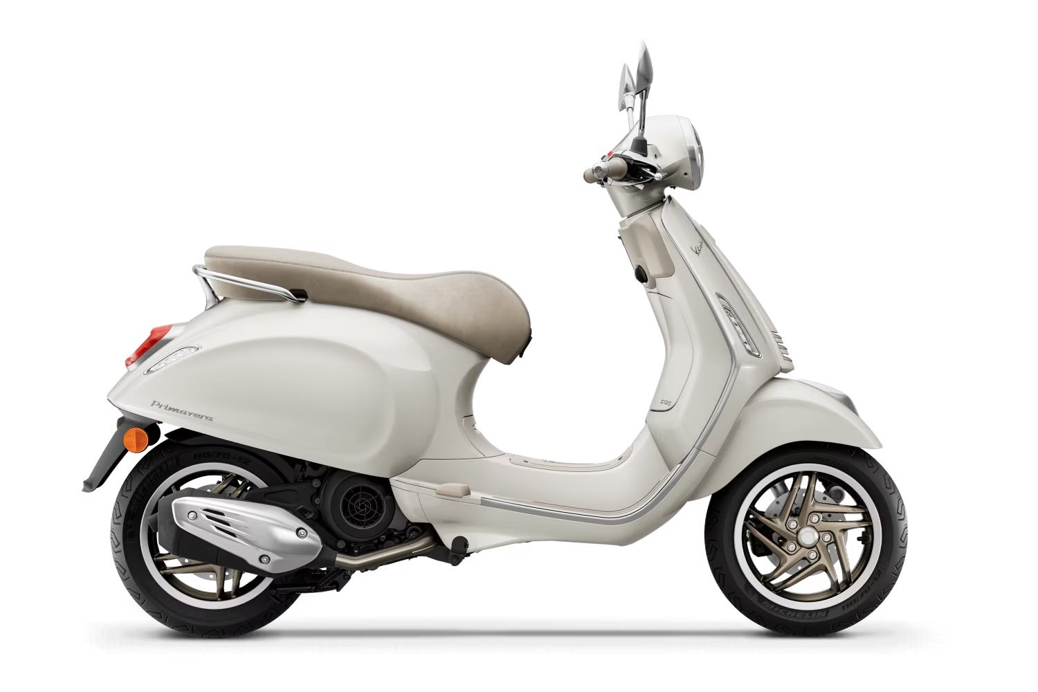Die Vespa Primavera S interpretiert die Eleganz einer italienischen Ikone mit einem zeitgemäßen und leichten Erscheinungsbild. Die exklusiven und speziellen Oberflächen verleihen ihr einen unverwechselbaren und verspielten Stil, während die Farben eine klare und frische Ästhetik zum Ausdruck bringen.