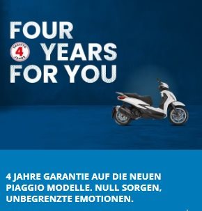 VIER JAHRE FÜR DICH: Hol dir bis zu 4 Jahre Garantie, wenn du einen Piaggio Roller bei einem unserer offiziellen Händler kaufst.