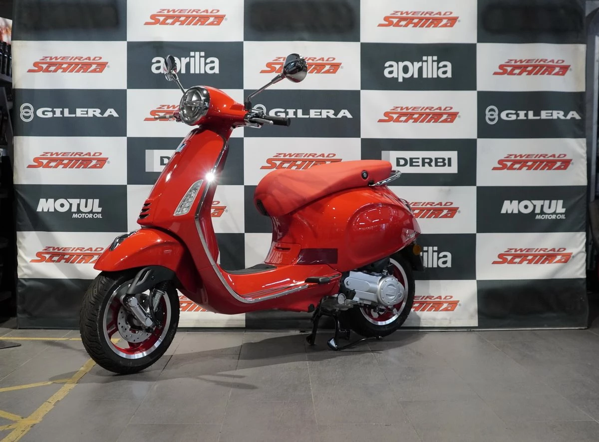 Alles an der Primavera (RED) ist Rot. Sie ist eine Hommage an die besondere Zusammenarbeit mit dem außergewöhnlichen Partner (RED), auch steht sie für die visionäre Einstellung, die Vespa schon immer ausgezeichnet hat. Die Bodyparts und alle anderen Stilelemente sind rot.