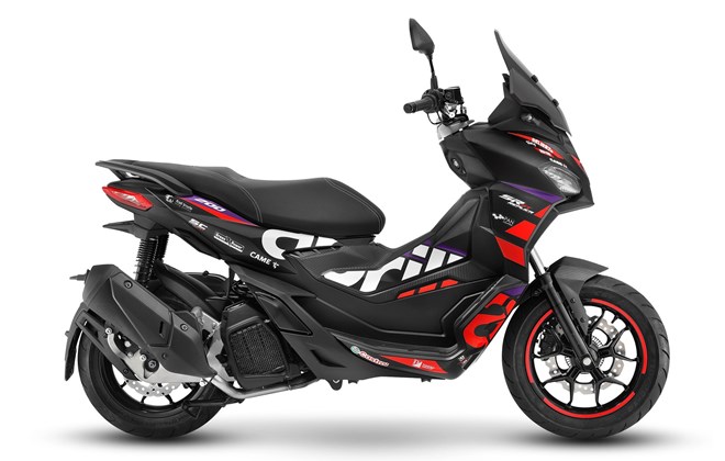 Der Aprilia SR GT Sport zeichnet sich durch exklusive Details aus, die seinen sportlichen Charakter unterstreichen. Der vordere Fender, der Haltegriff für den Beifahrer und Spoiler in Schwarz passen zur Farbe des vorderen ...