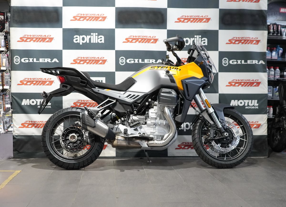 Mit dem Temperament eines geborenen Reisenden und einem unerschrockenen Geist ist die Stelvio ein moderner Adventure-Tourer, der das Erbe von Moto Guzzi in jedem Detail zum Ausdruck bringt, indem er moderne, reduzierte Linien mit den modernsten technologischen Lösungen wie der PFF Rider Assistance Solution kombiniert. Ein unverwechselbares Design Solide, kompakt und kraftvoll