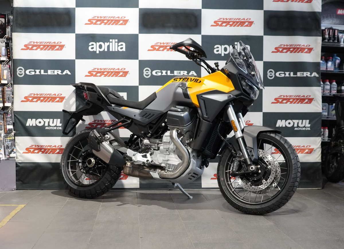 Komfort findet sich in jedem Detail des Stelvio und keine Straße ist tabu, unabhängig von der Beladung. Dank des 19-Zoll-Vorderrads, des 170-mm-Federwegs, der geräumigen Sitzbank, die moderate 830 mm über dem Boden liegt, des elektrisch verstellbaren Windschilds.