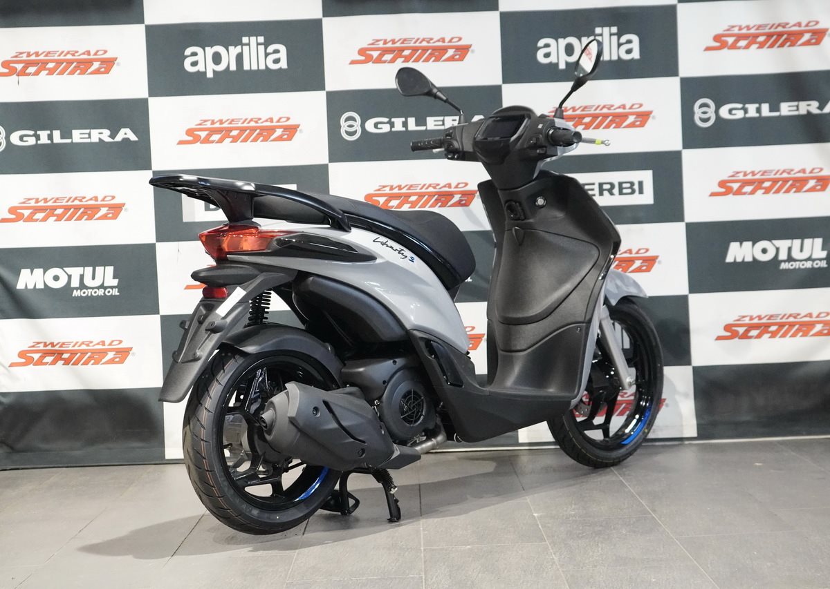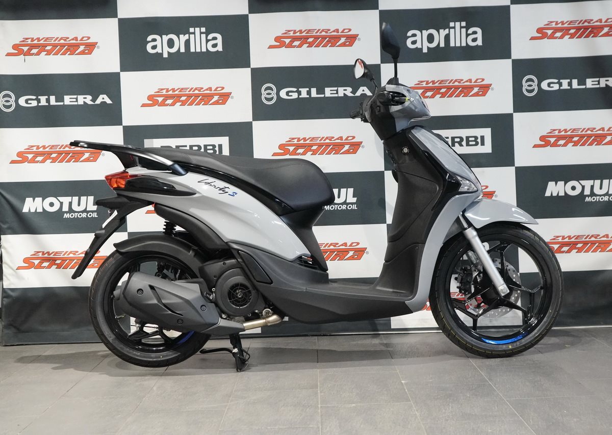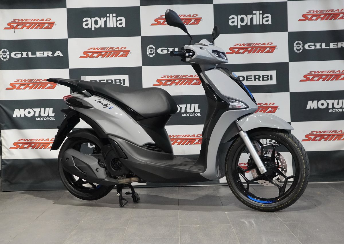 Der Piaggio Liberty S erfüllt alle Anforderungen an die urbane Mobilität dank seines luftgekühlten Einzylinder-4-Takt-Motors nach Euro5 Norm mit elektronischer Einspritzung. Die optimierte Abgasanlage und der verbesserte Luftfilter ermöglichen brillante Leistung, niedrigen Verbrauch und eine leise Fahrt. Ergänzt werden diese Eigenschaften durch technische Lösungen, die Agilität und Komfort verbessern: Das 16-Zoll-Vorderrad mit einem Reifen mit hohem Querschnitt absorbiert Unebenheiten, und der erhöhte Lenker sorgt für eine bequeme und natürliche Fahrposition.