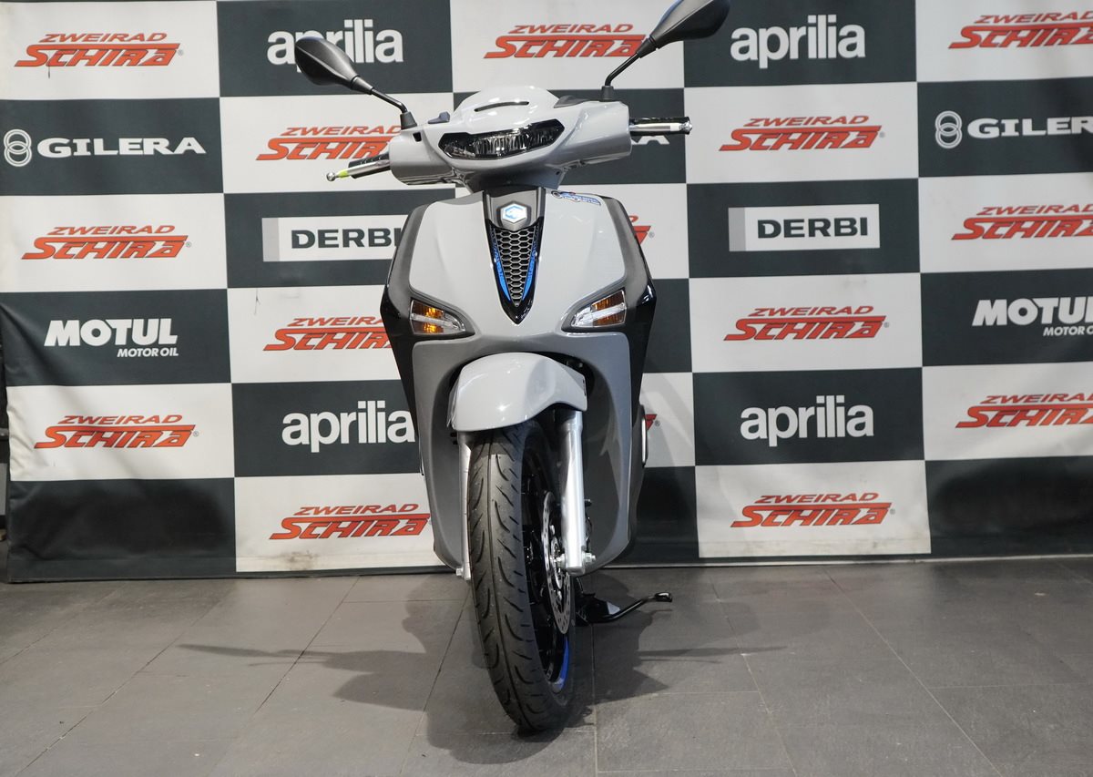 Die markante Persönlichkeit des Piaggio Liberty S zeigt sich in seinen kraftvollen Farben, aber es sind die Details, die den Unterschied ausmachen: Hochglänzend schwarze Veredelungen umfassen die Zierelemente, den Rahmen des Rücklichts, die Umrandung der Blinker und das Logo. Glänzend blaue Akzente heben die Umrandung der Krawatte am Frontschild und die dunklen, dreifach geteilten Speichenfelgen hervor. Der moderne horizontale LED-Scheinwerfer und das wabenförmige Gitter an der mittleren Krawatte definieren das ausdrucksstarke Frontdesign, das dennoch dem harmonischen Stil des Piaggio Liberty treu bleibt.