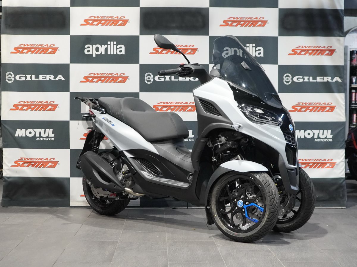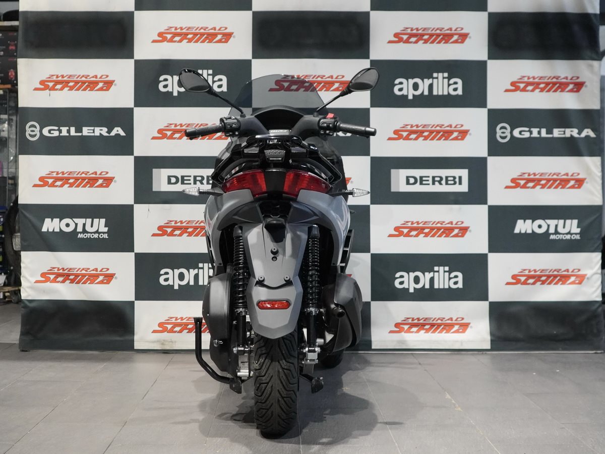 Die Bremsleistung des Piaggio MP3 310 Sport wird durch Scheibenbremsen an allen drei Rädern gewährleistet, wobei die vorderen Scheiben ein Wellenprofil aufweisen. Abgerundet wird die exklusive Sport -Ausstattung durch das serienmäßige Piaggio MIA, das Ihr Smartphone über Bluetooth verbindet