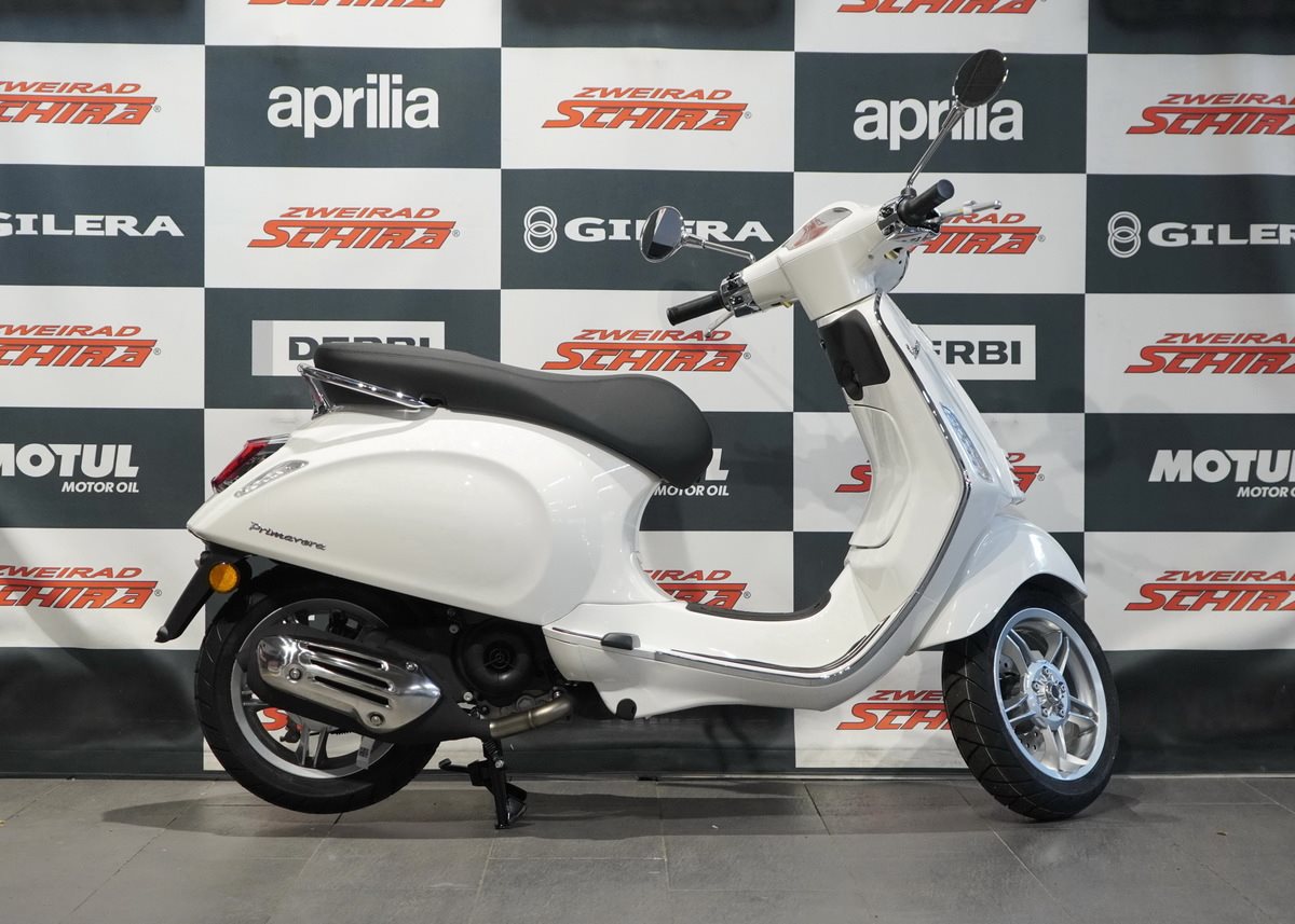 Moderne Details und zeitloser Stil verbinden sich. Mit ihrem schnittigen Design und den Chromakzenten bringt die Vespa Primavera eine zeitgenössische Ausstrahlung und eine lebendige Farbpalette in das reiche Erbe der Vespa.