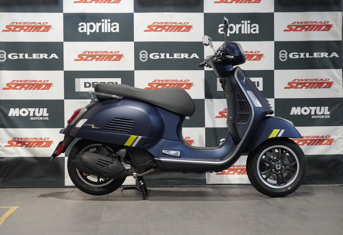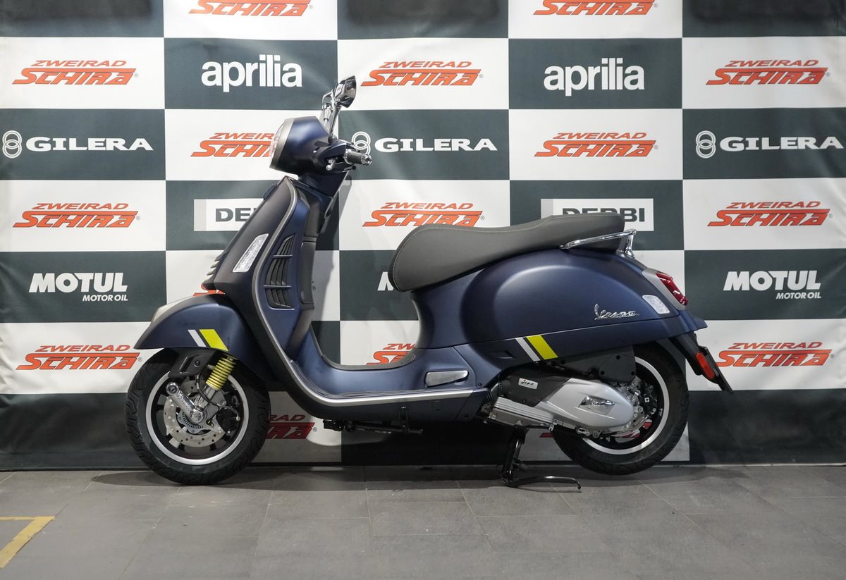Ein unverwechselbarer und gewinnender Look, typisch für eine Gts, verbindet sich mit einzigartiger Anziehungskraft und purer Technologie. Die Vespa Gts SuperTech setzt ein Statement mit intensiven Farben, die durch glänzende und matte Lackierungen interpretiert werden und das hochtechnologische, raffinierte Design zur Geltung bringen. Chromlinien und fluoreszierende Details betonen seine futuristische Seele, während die schwarze Sitzbank mit kontrastierenden Nähten für einen zusätzlichen Hauch von Eleganz sorgt.