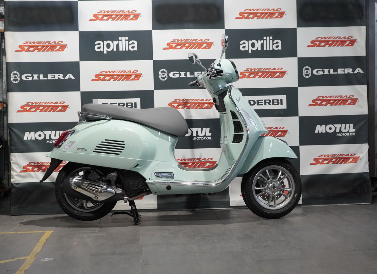 Die Vespa Gts ist bis ins kleinste Detail durchdacht. Die Metallic-Farben glänzen, Sitzbank und Interieur sind aufeinander abgestimmt, die Chromelemente sorgen für das gewisse Extra an Eleganz und natürlich trägt die berühmte Krawatte weiterhin zum Status der Vespa als zeitlose Ikone bei.