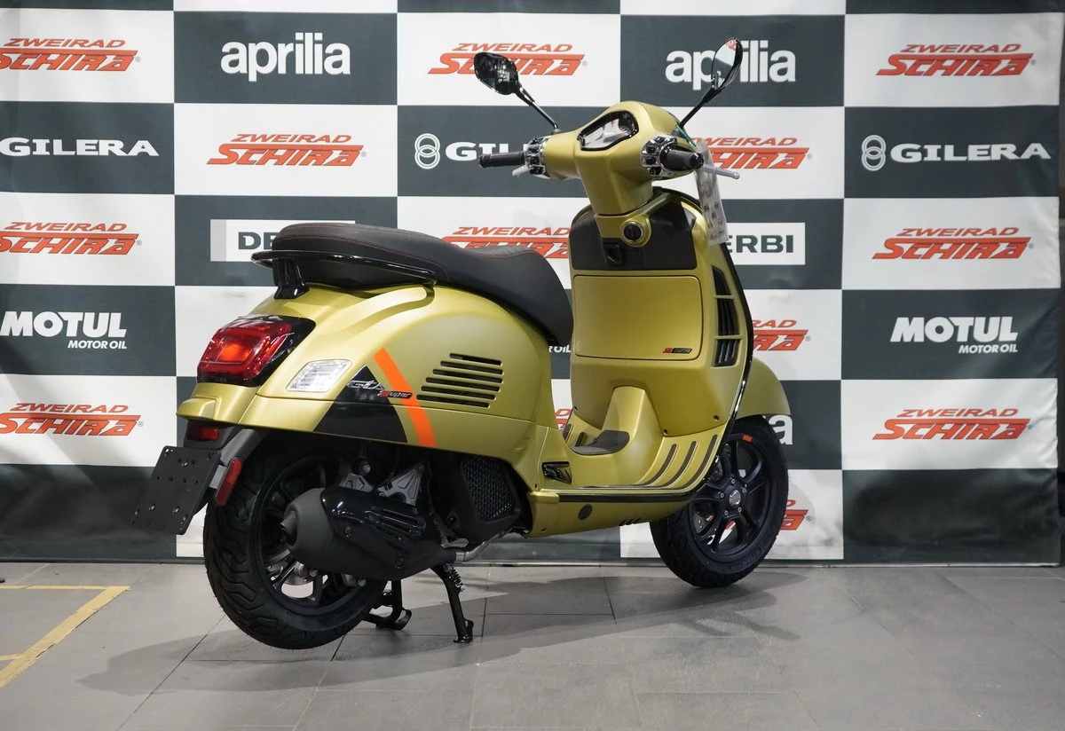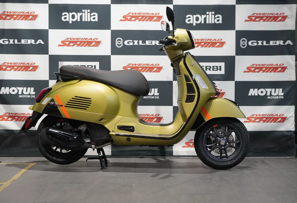 Die Vespa Gts SuperSport besticht durch ihre glänzenden und matten Farben, die durch Details im Carbon-Look und glänzend schwarze Zierleisten ergänzt werden. Die Sitzbank mit hochwertigen Materialien und Kontrastnähten unterstreicht ihren starken Charakter. Mit der Vespa Gts SuperSport wird jeder Tag zu einem aufregenden Abenteuer.